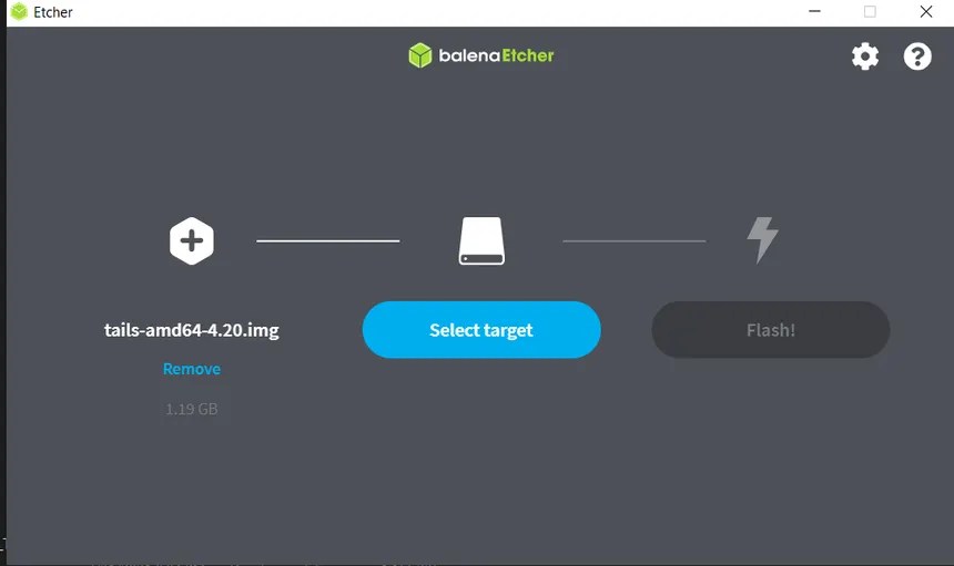 .imgfile you downloaded, and select your USB drive. - Click Flash! This will wipe the drive and install the base version of Tails.